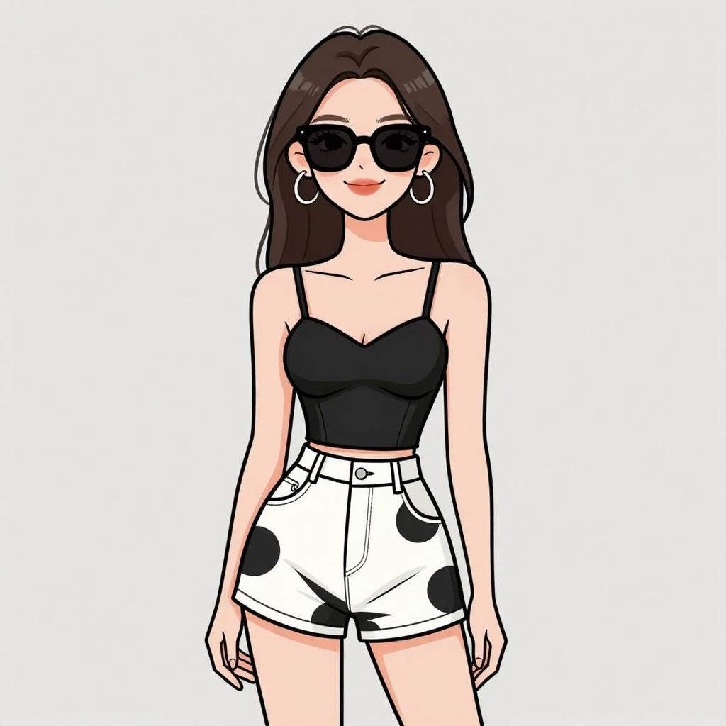 Woman with pretty face and pretty hair. smiling Woman, casual boho, dusty rose sleeveless top with a V-neckline and flounced hem, light wash denim jeans, black and white cow print bucket hat, layered necklaces, white studio background --sref 1467
