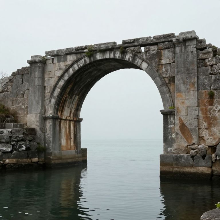 Suspended above the still waters, the ancient stone arch whispers of transience and eternity, where the weight of regret and the ache of missed opportunities converge, leaving behind the echoes of silent footsteps and the faint scent of forgotten dreams.