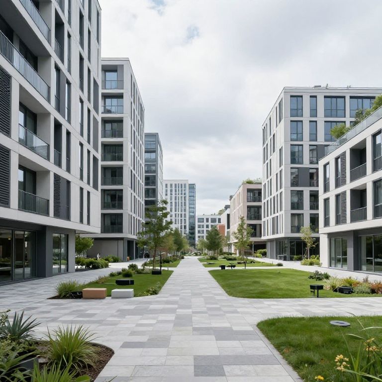Urban architecture cities with minimalist design, clean lines and open spaces, cityscapes showcasing modern apartments and public parks integrated into the urban layout