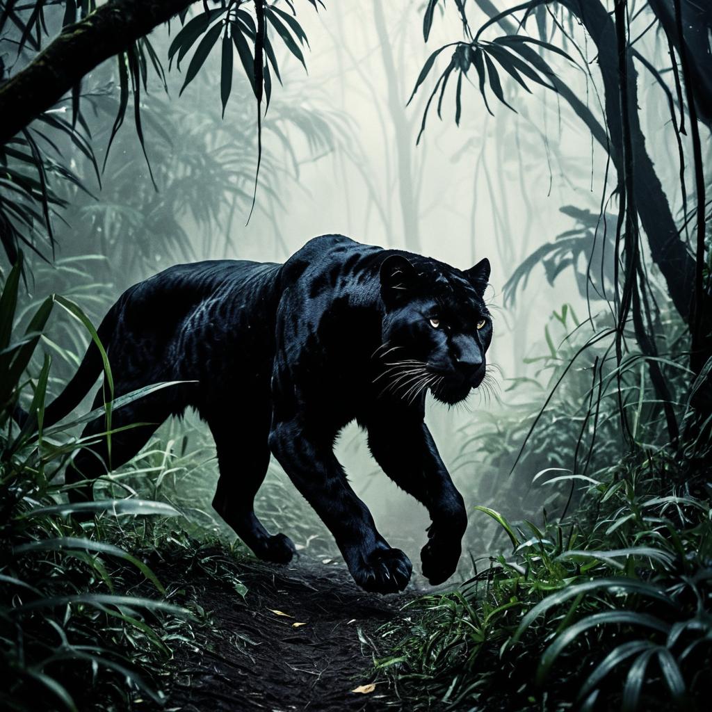 A radiant golden eagle soaring in a shadowy rainforest, surrounded by eerie shadows and mystical tendrils.