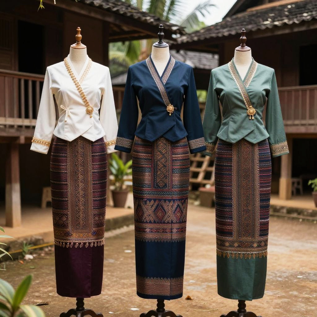 Close-up of a Kazakh dress texture, colorful hand-stitched patterns in turquoise, burgundy, and white, layered fabrics with subtle gold thread, displayed on a rustic wooden hanger with traditional Kazakh artifacts and woven rugs in soft ambient light