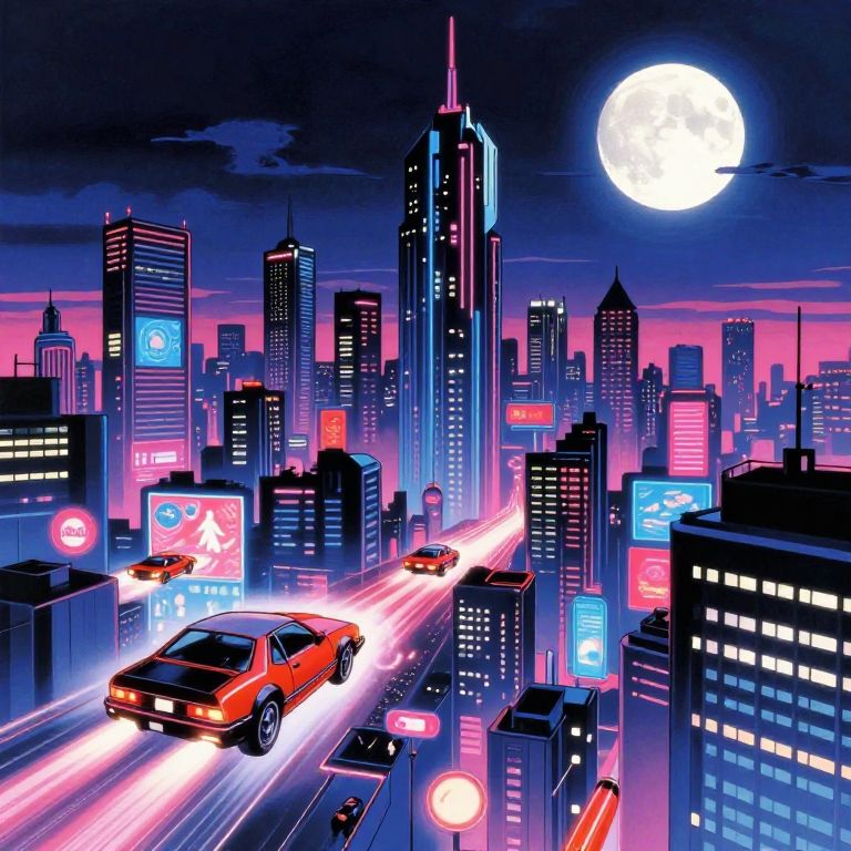 Retro 80s Cyberpunk Anime Cityscape