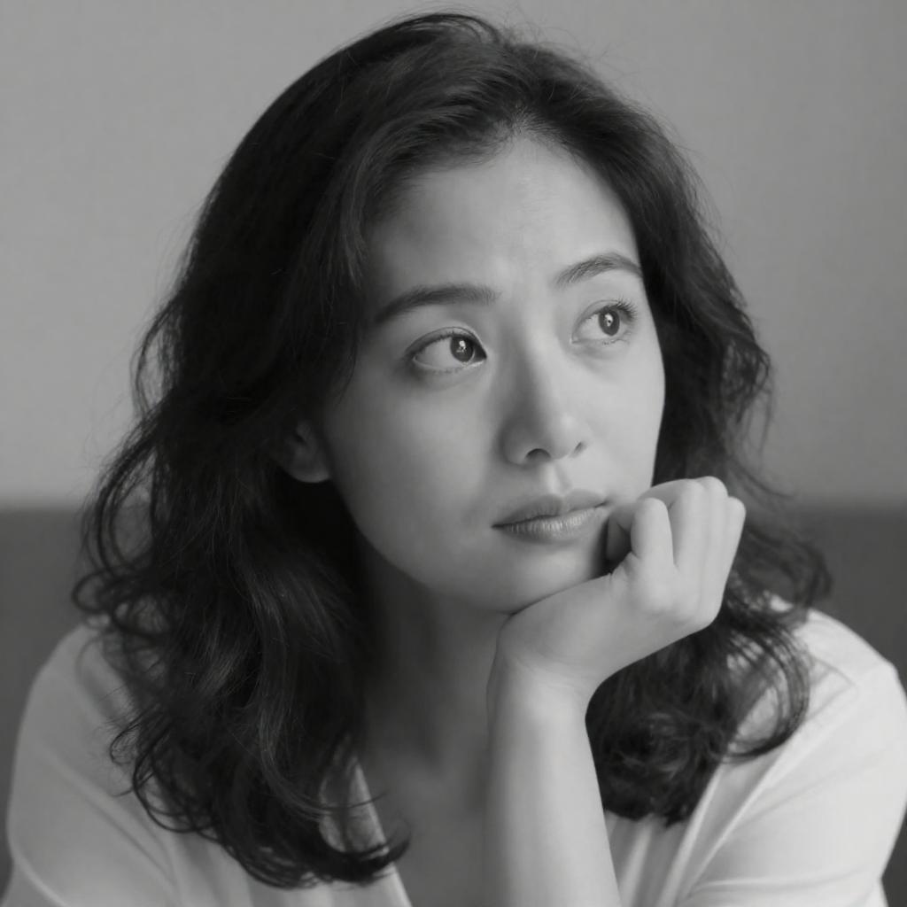 Contemplative Woman in Black-and-White