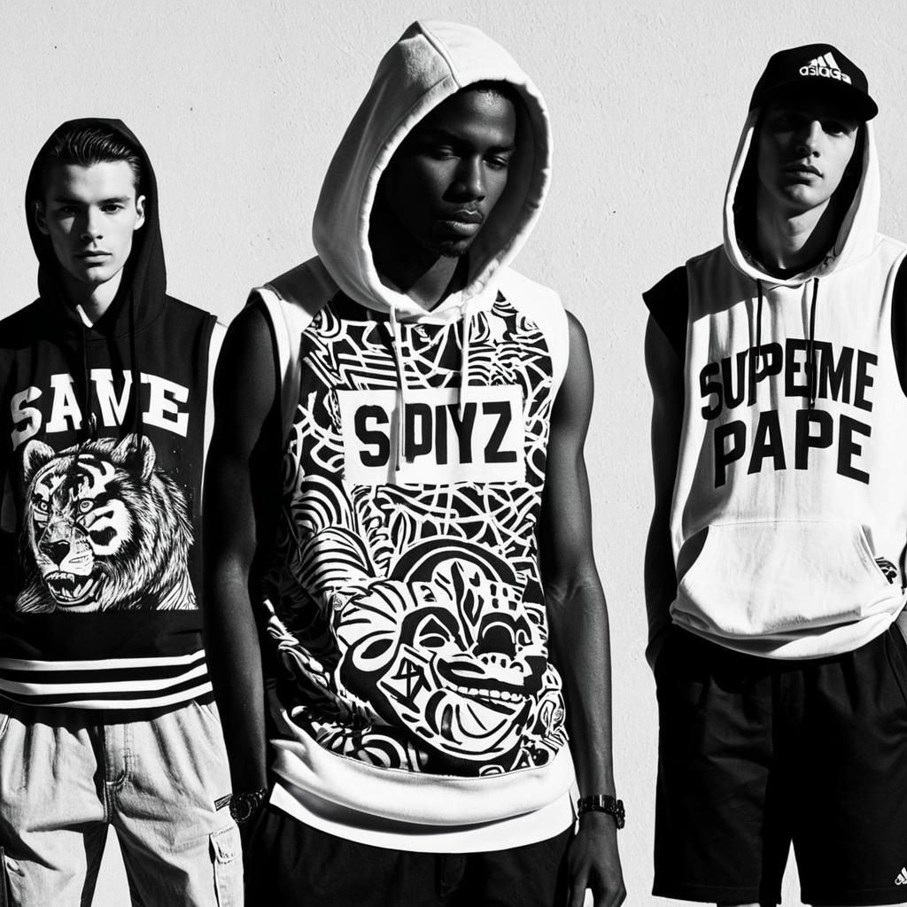 Create a moodboard for mens shorts for the upcoming summer season. The designs should be inspired by picturesque tropical leaves as large, central motifs on the front of the shorts. Draw inspiration from modern streetwear brands such as Stüssy, Palace, and Nike to craft a stylish and contemporary aesthetic. Consider earthy color palettes, nature-inspired patterns that evoke a relaxed yet fashionable summer vibe.