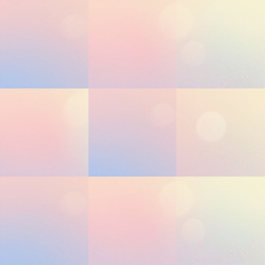 Abstract digital artwork featuring a gradient grid of pastel pink, blue, and white squares, blending softly to create a serene, harmonious effect.