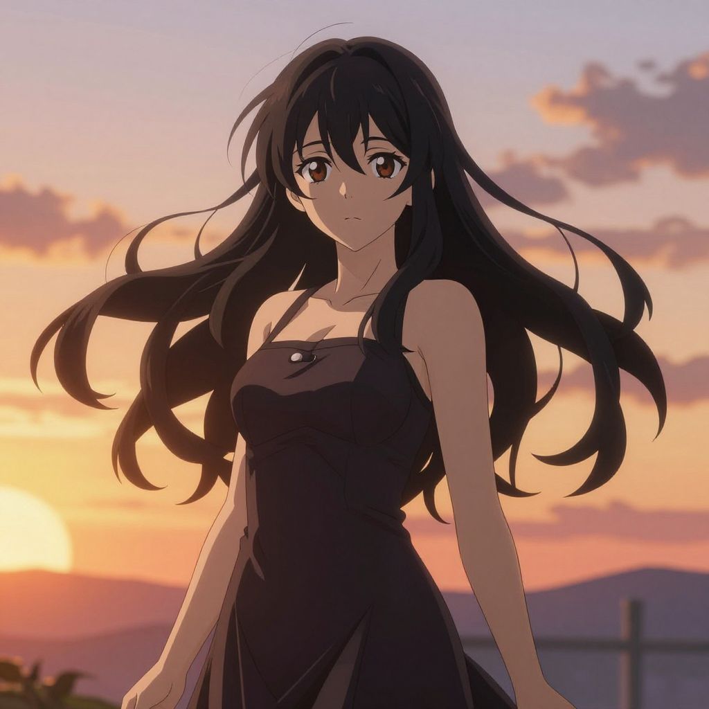 Anime Girl Posing on Rooftop