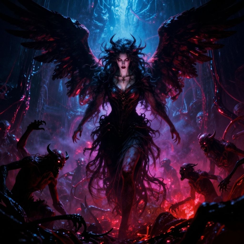 Cinematic still Horror-themed amaze the viewer with a masterful work of extreme artistry, the exacting precision of every brush stroke making the canvas come alive with awe-inspiring visuals, a vengeful angel slaying demons in the abyss, the artist celebrating the triumph of a fallen goddess seeking revenge, her eyes dare the viewer to meet their gaze, otherworldly, demon-infested hellscape, intricately detailed masterpiece. Eerie, unsettling, dark, spooky, suspenseful, grim, highly detailed . emotional, harmonious, vignette, 4k epic detailed, shot on kodak, 35mm photo, sharp focus, high budget, cinemascope, moody, epic, gorgeous, film grain, grainy, Dark Fantasy Art, Horror-themed amaze the viewer with a masterful work of extreme artistry, highly detailed, dark fantasy style, cyberpunk game style Horror-themed amaze the viewer with a masterful work of extreme artistry, highly detailed . neon, dystopian, futuristic, digital, vibrant, detailed, high contrast, reminiscent of cyberpunk genre video games, cinematic perfect, very inspirational, glowing rich colors, creative, positive aesthetic, colorful, rational, pure, light, intricate, magical atmosphere, marvelous, deep vibrant color, epic composition, inspiring, whole fine detail