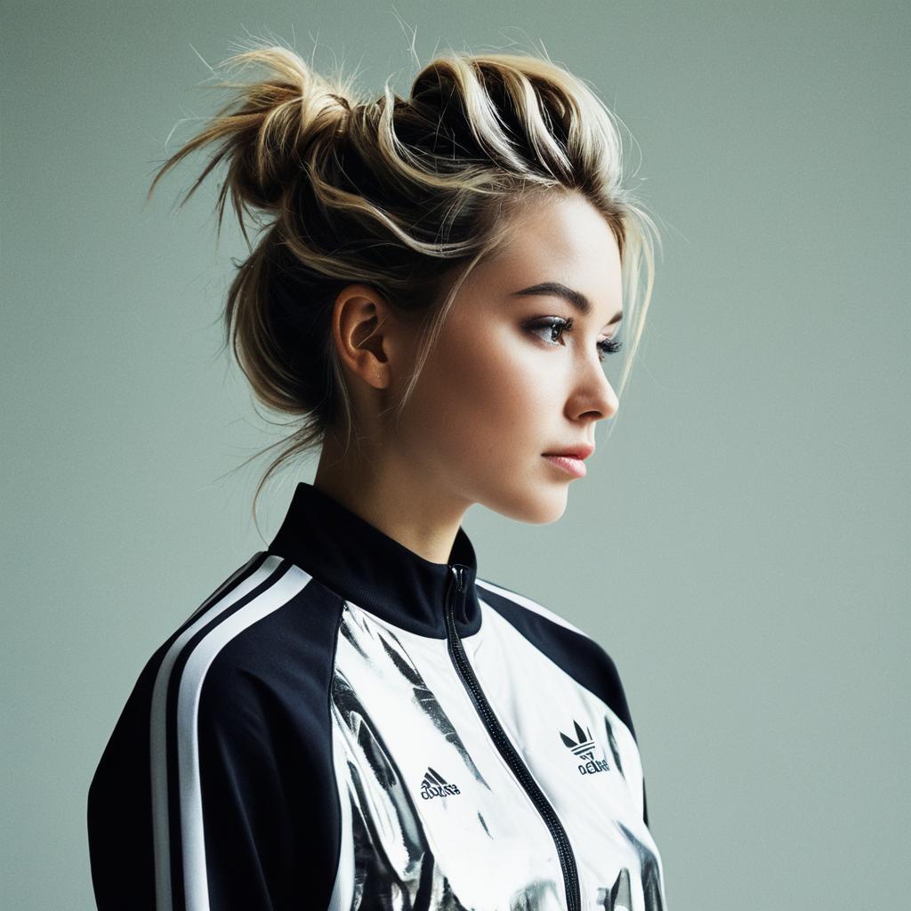 Teen Girl with Braided Ponytail and Glossy Jacket