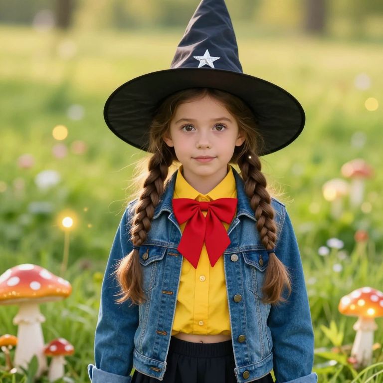 Whimsical Boy Witch in Sunny Meadow