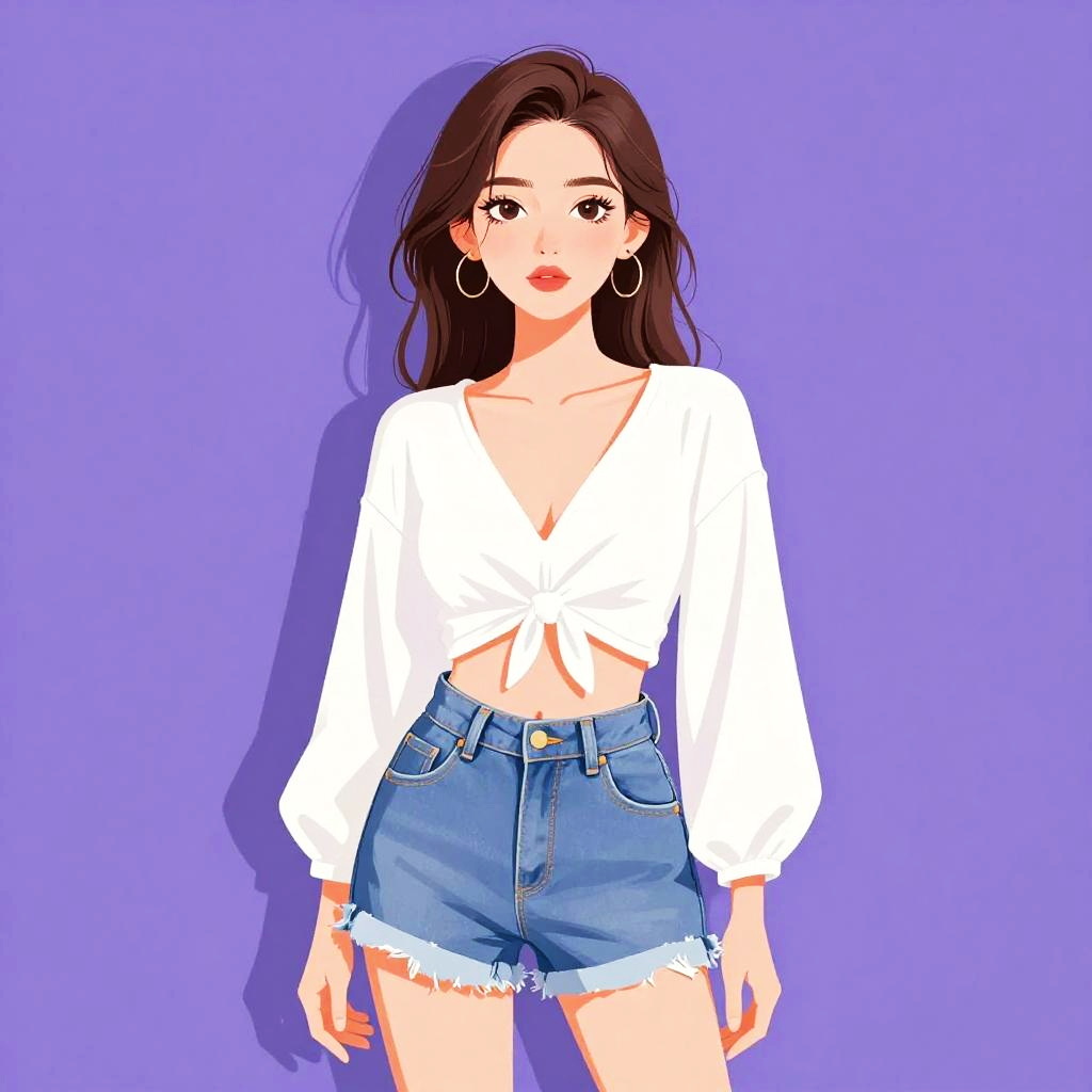 Woman with pretty face and pretty hair. smiling Woman, casual contemporary, cropped hoodie in off-white with a subtle textured pattern, lace-up front, long sleeves with elastic cuffs, black high-waisted leggings, plain background --sref 1467