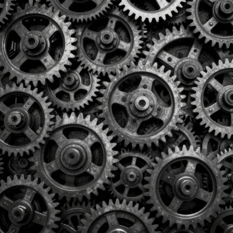 In an endless expanse of interlocking gears, the hum of ceaseless motion whispers a silent symphony of industrial melancholy, where the rhythm of progress grinds forward with both awe-inspiring precision and haunting anonymity.