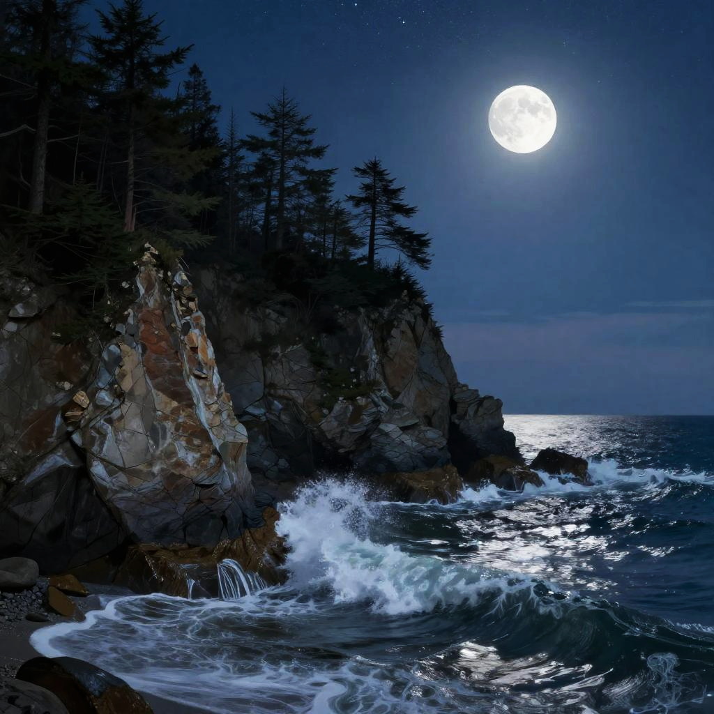 Moonlit Rugged Coastal Cliffscape