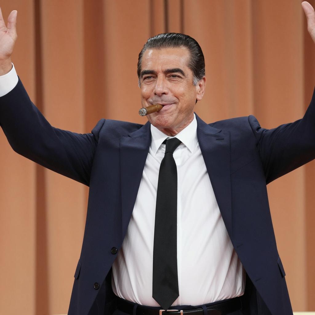 Intense Businessman in Beige Suit