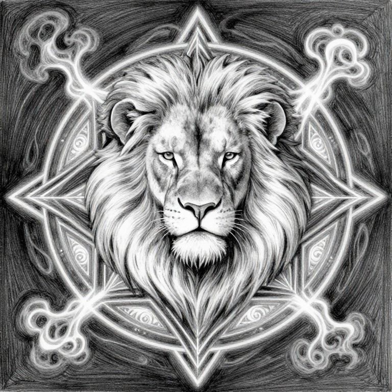 Pencil painting of the astrological sign Leo, mandala style, trippy, glowing, smoke, by Katsuhiro Otomo and Naoki Urasawa and frank frazetta - Upscaled by,