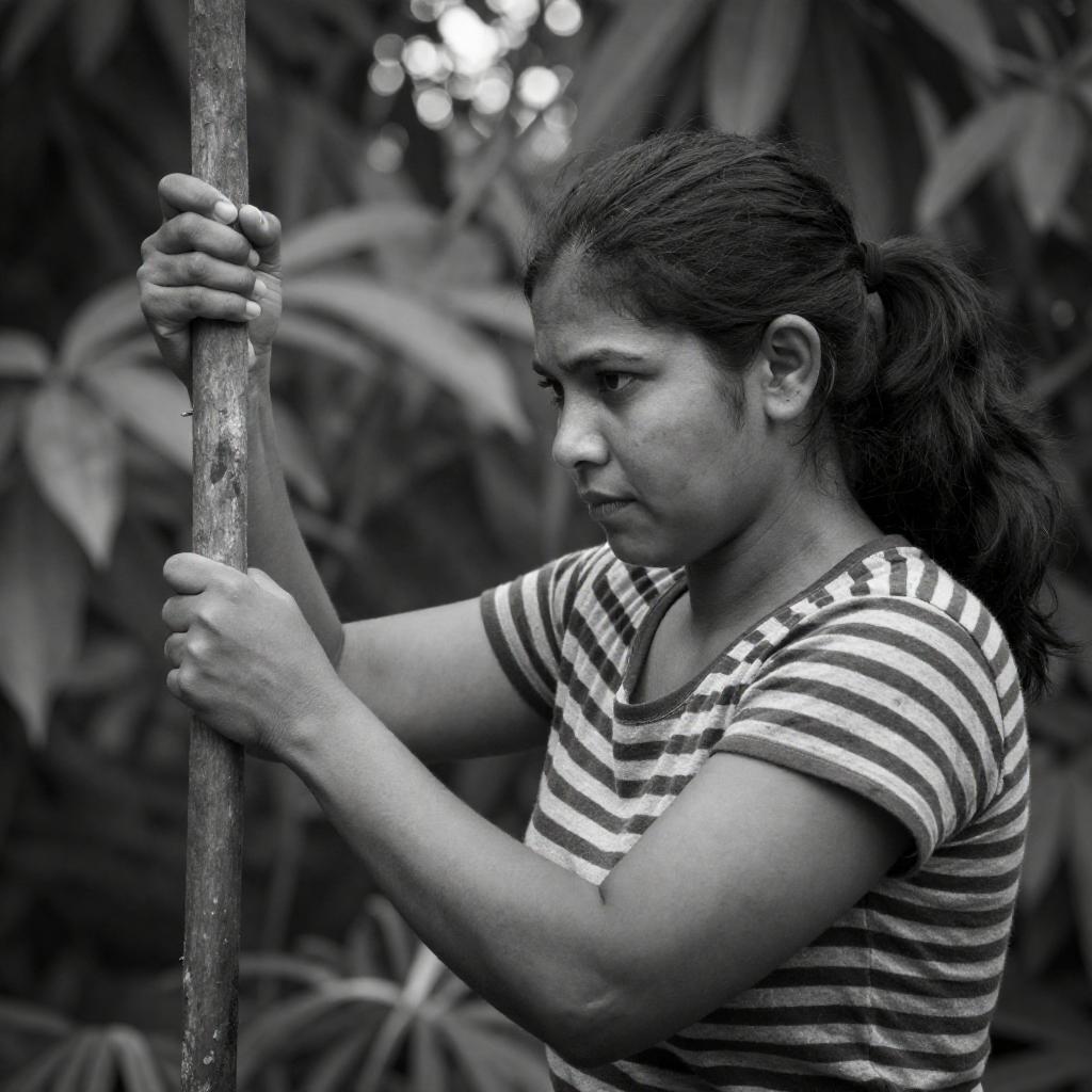 Cinematic portrait of South Asian female farmer in terraced rice fields at sunrise bathed in misty golden-hour backlight with warm rim light, Fujifilm emulation, vibrant colors, 4K ultra-realistic detail.