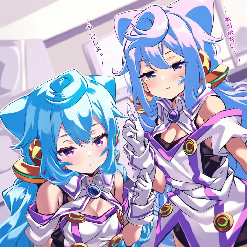 Hacka doll 3, hacka doll, 1boy, purple eyes, blue eyes, blue hair, long hair, white gloves, by artist cirilla lin, animagine