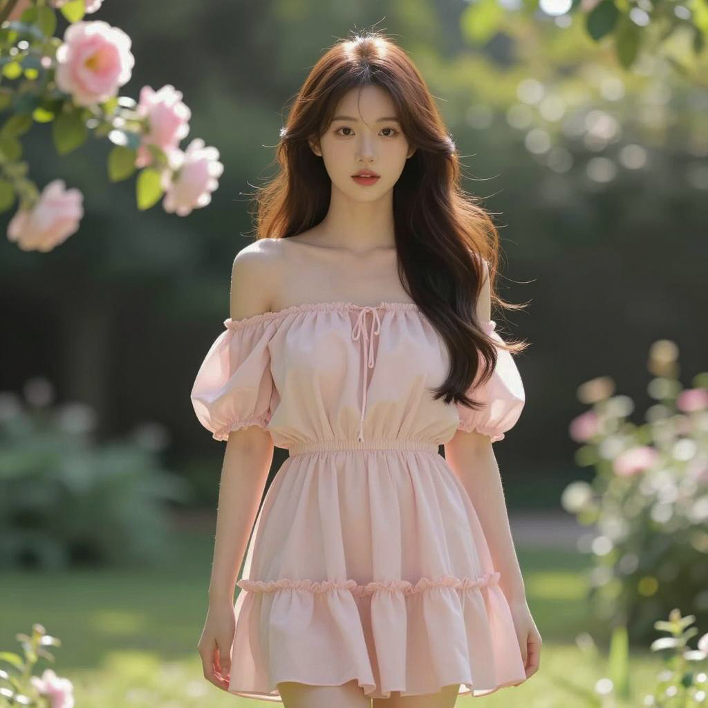 Young Woman with Hibiscus in Sunshine