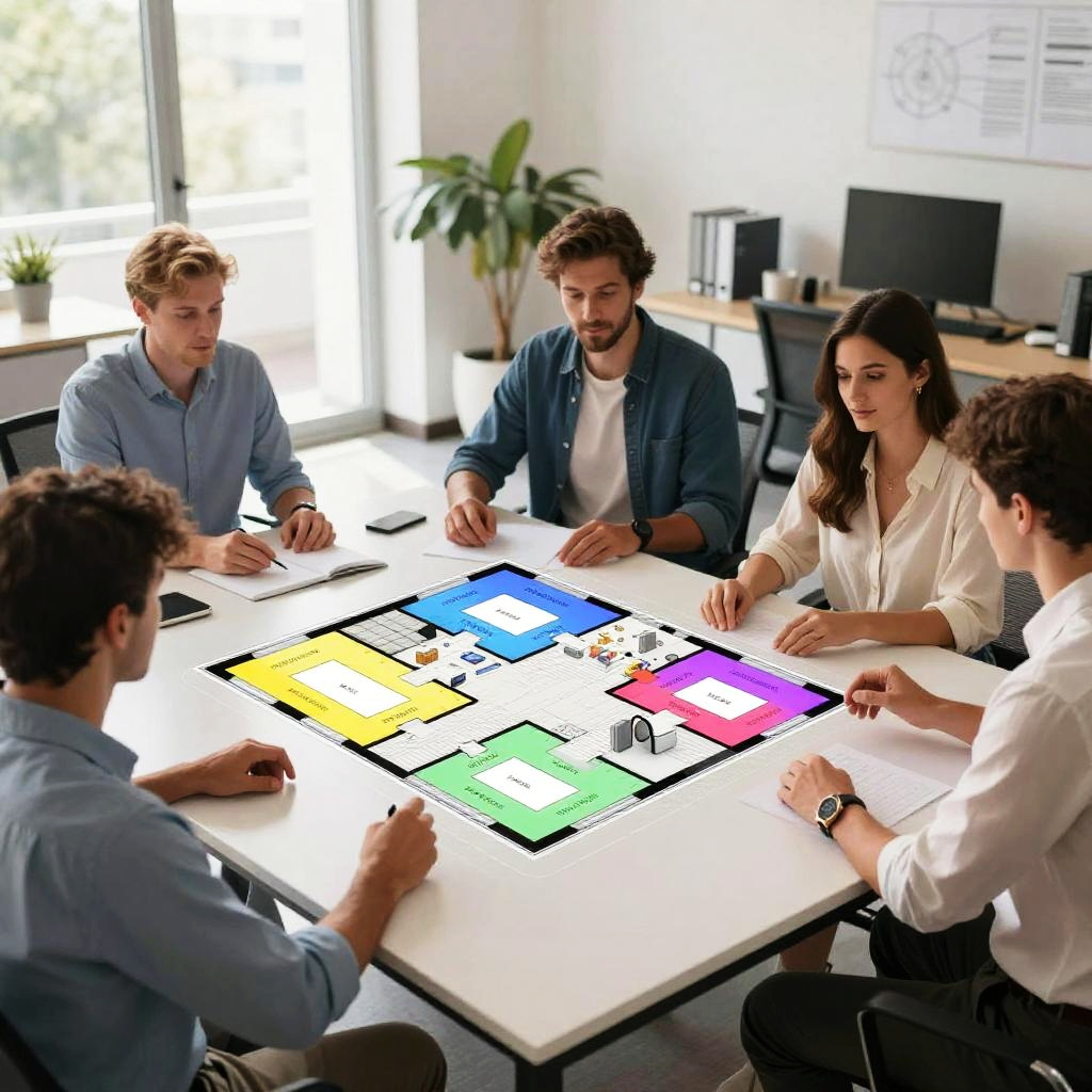 Floorplan AI in augmented reality environment where users manipulate virtual floor layouts, bright and vibrant cutting-edge technology hovering over a sleek table, emphasis on user interactivity and AI precision, modern office setting with natural light and digital integration, high detail visualization