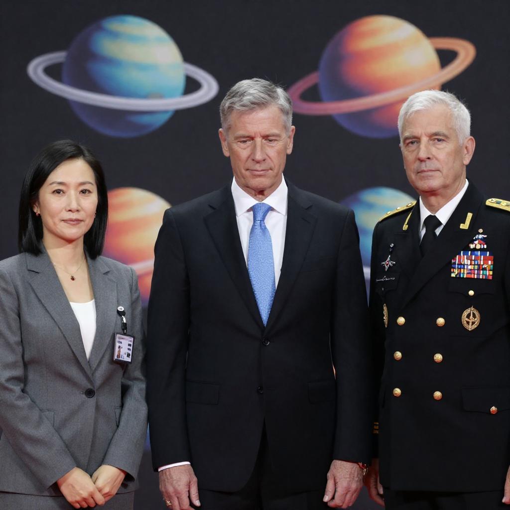 Photograph of a TV debate stage featuring three seated people engaged in discussion. On the left, a blonde woman in a blue dress holding papers. In the center, a middle-aged man in a dark suit with a striped tie is gesturing with his right hand. On the right, an older man in a black suit, white shirt, and patterned tie is seated. The background includes two wooden podiums with blue and white stars, blue curtains, and a small wooden table holding three water bottles in front of the participants.