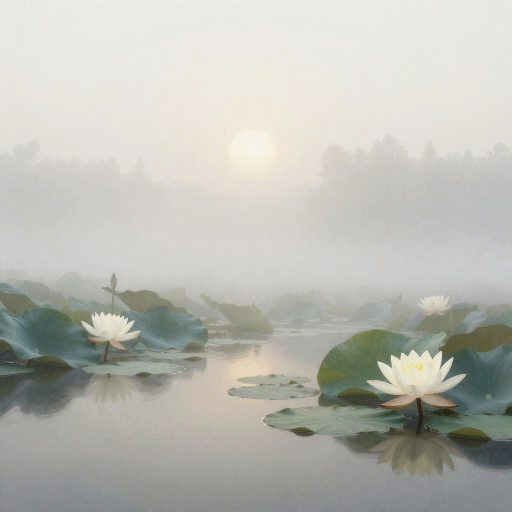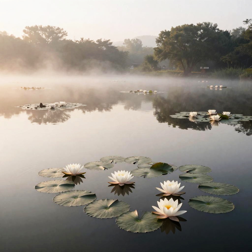 Misty Water Lily Pond at Dawn