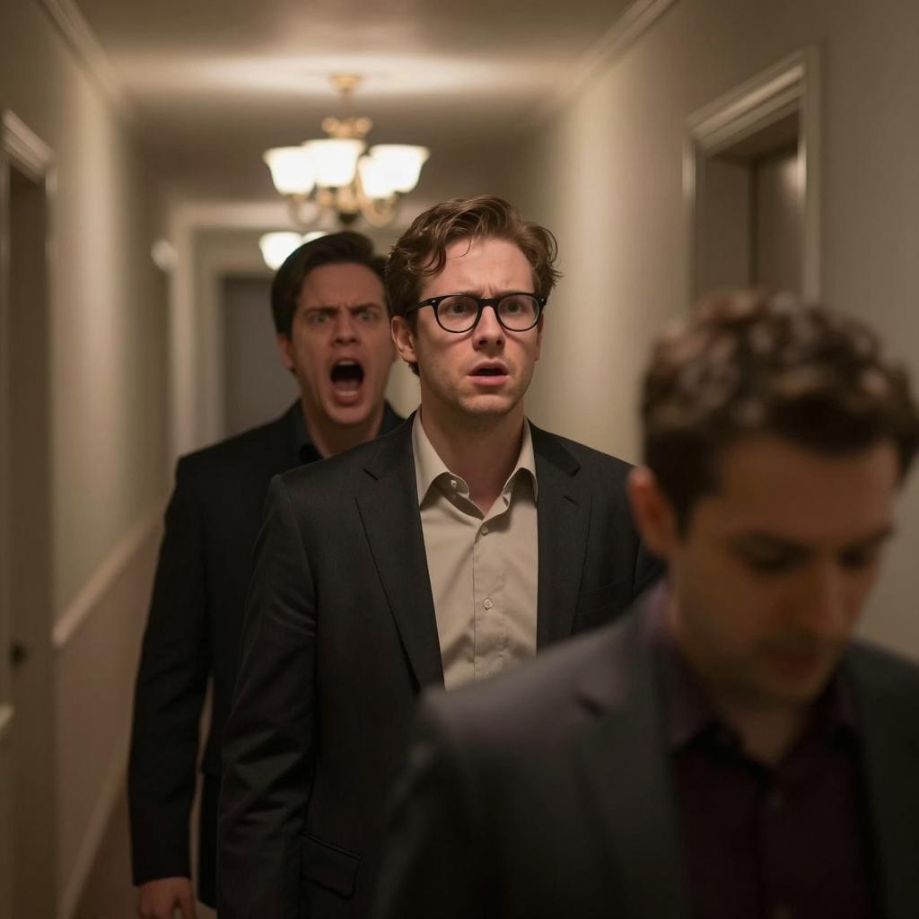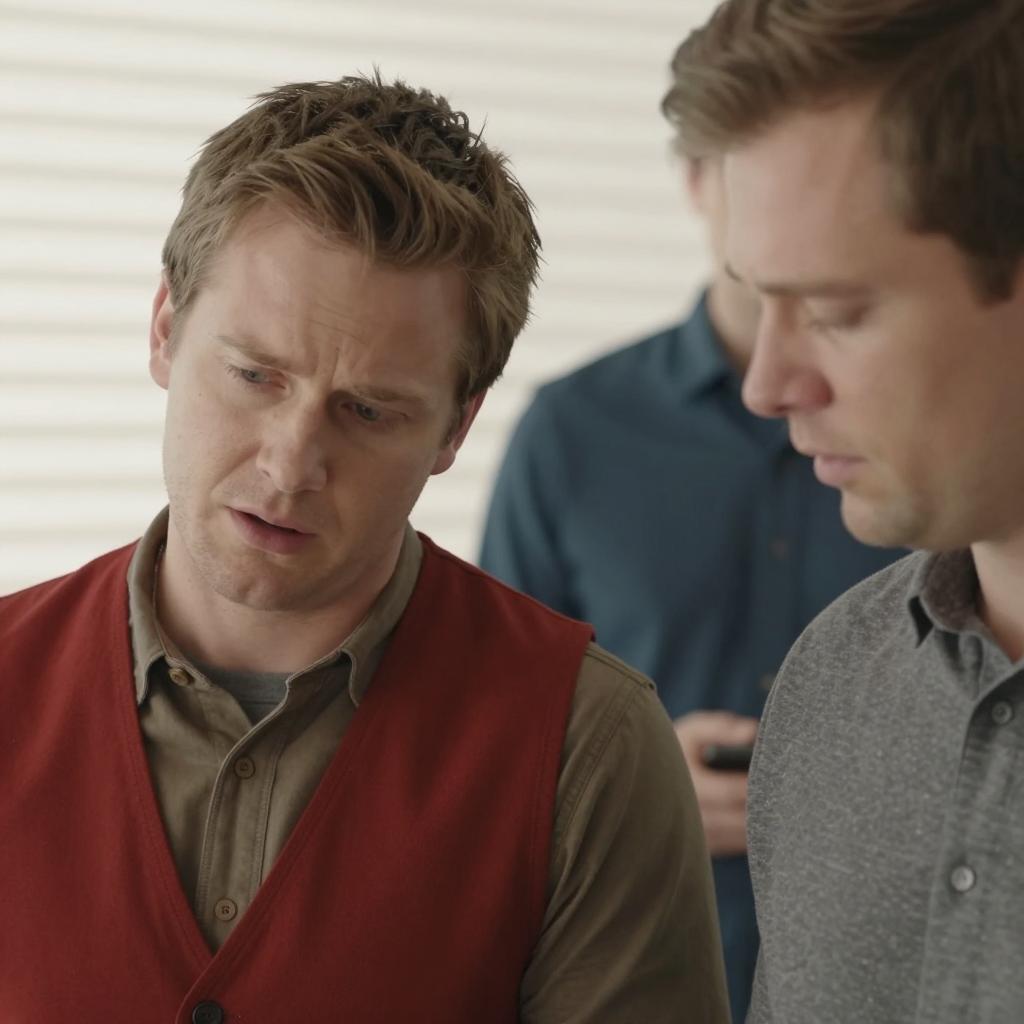 Men Conversing in a Dimly Lit Room