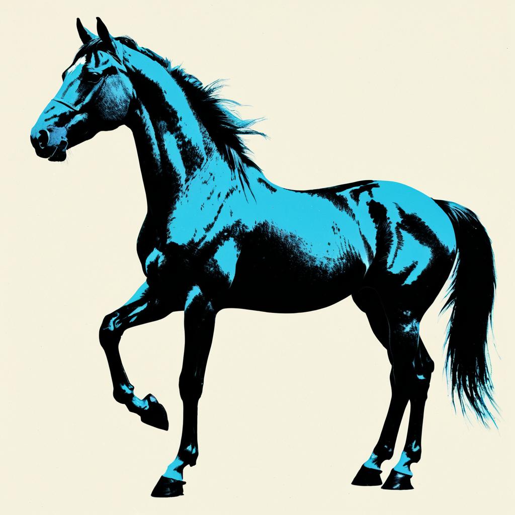Artwork in the style of Andy Warhol highlighting a gleaming spaceship, with neon highlights and pixelated shading.