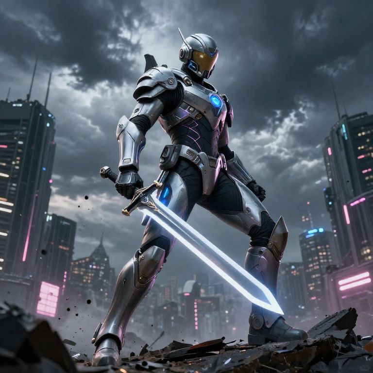 Futuristic Warrior with Plasma Sword