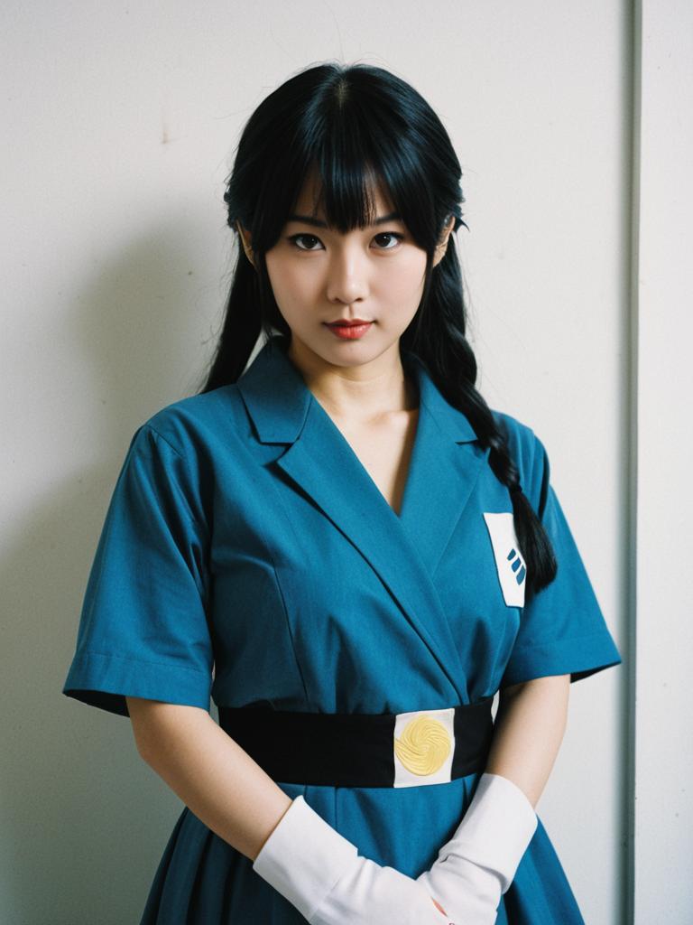 Sexy cosplay woman character wearing Jun Suzuki costume. Realistic photo. Jane Doe dressed as Jun Suzuki