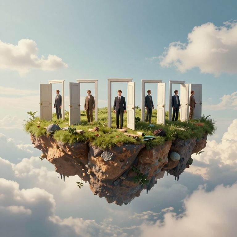 Surreal Floating Island with Timeless Doors
