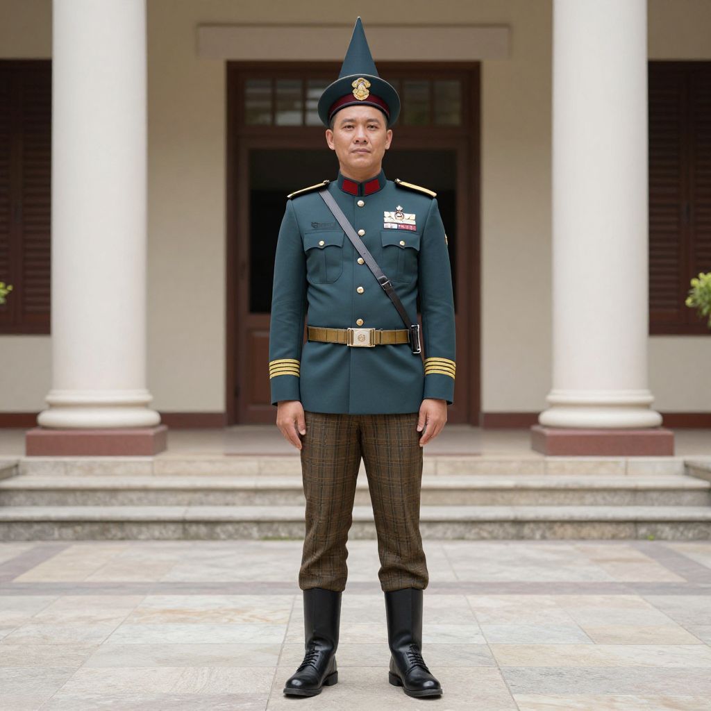 Captain Boun Raya Costume, man in uniform standing in front of a building