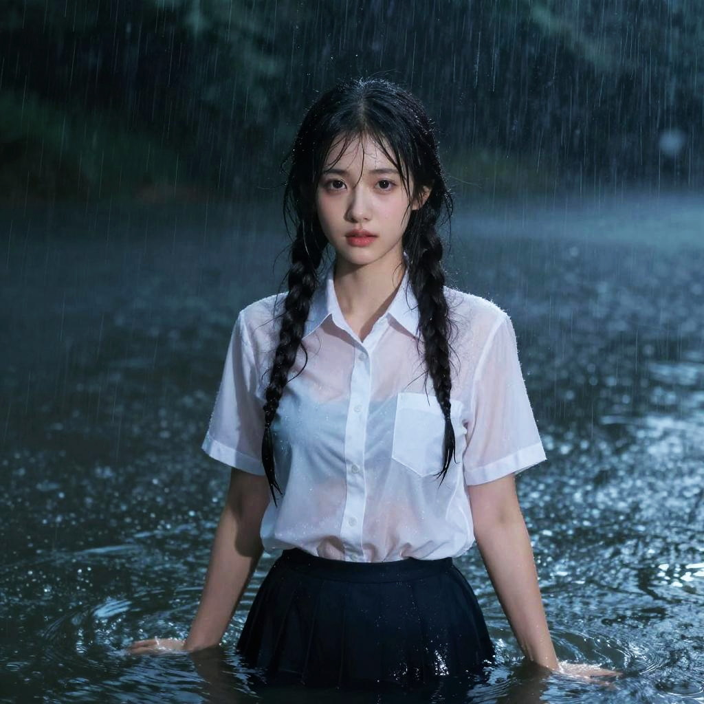 Best quality, masterpiece, ultra high res, (photorealistic:1.4), raw photo, 1girl, wet hair, wet body, water drop on the skin, directed by shane mcmellen, in the style of neon-lit pop art, photo taken with ektachrome, distorted portraiture, surreal sculpture, gothic dark and moody tones, softbox lighting, instax film