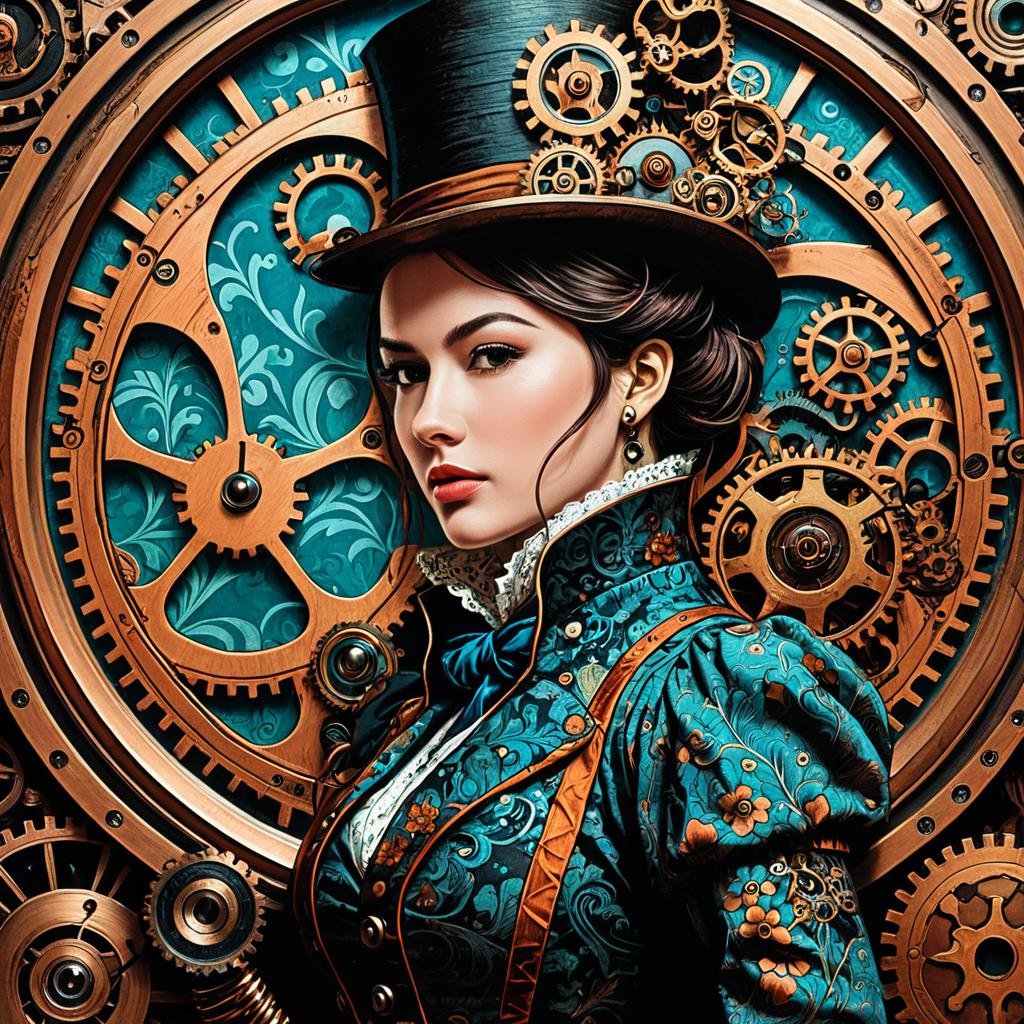 Steampunk Librarian in Surreal Mountainous Landscape