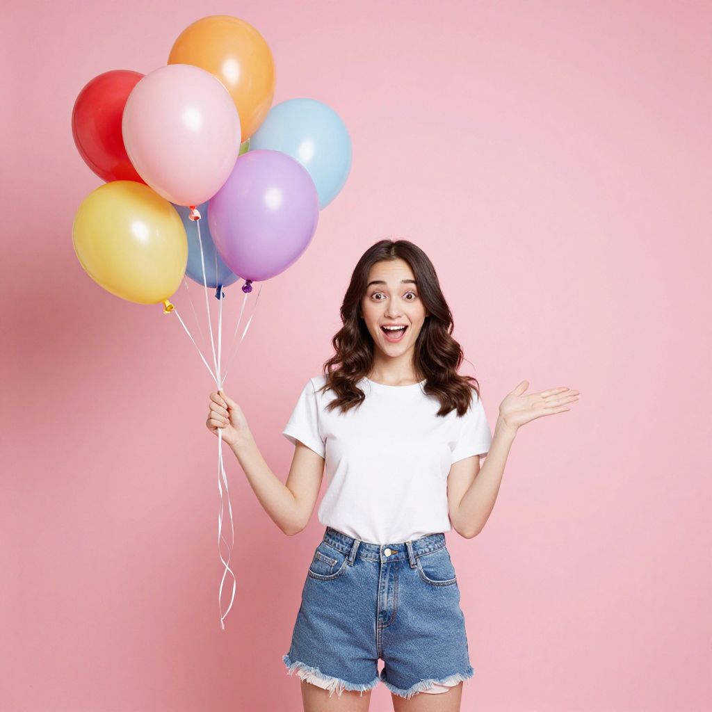 Joyful Fashion Woman with Balloons