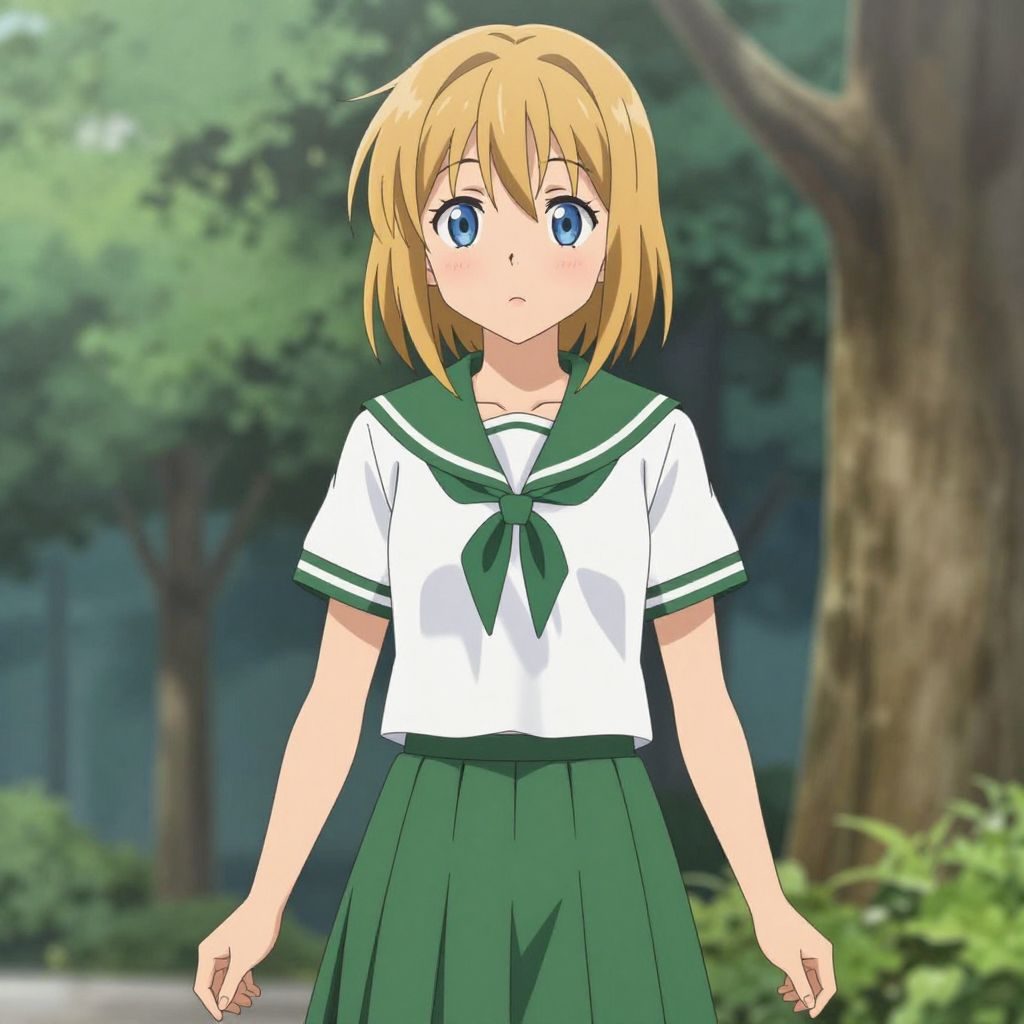 Anime Girl in Deku-Inspired School Uniform