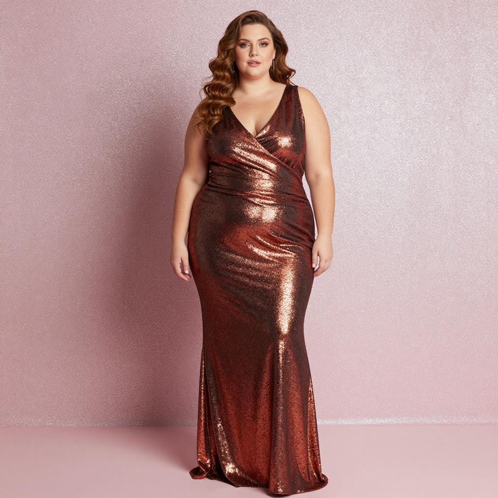 Woman in Purple Sequin Skirt Set with Wavy Blonde Hair