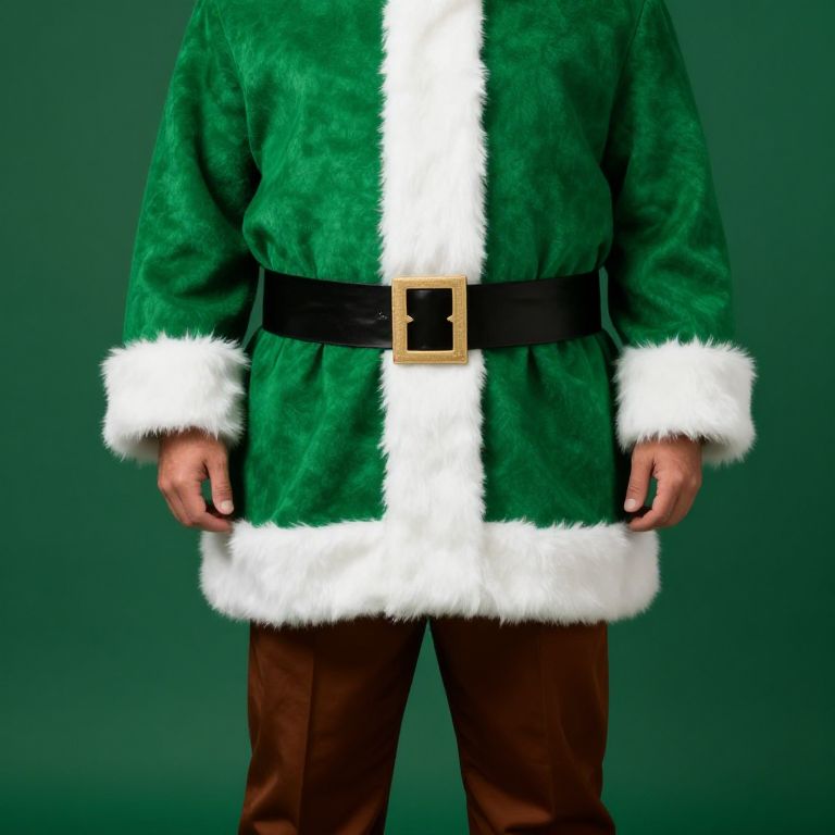 "plus size buddy elf man, 1boy, male focus, solo, hat, pointy ears, belt, pants, green headwear, full body, boots, standing, striped clothes, fat, brown footwear, green pants, striped socks, closed mouth Realistic photo of casual sexy person with pretty face"