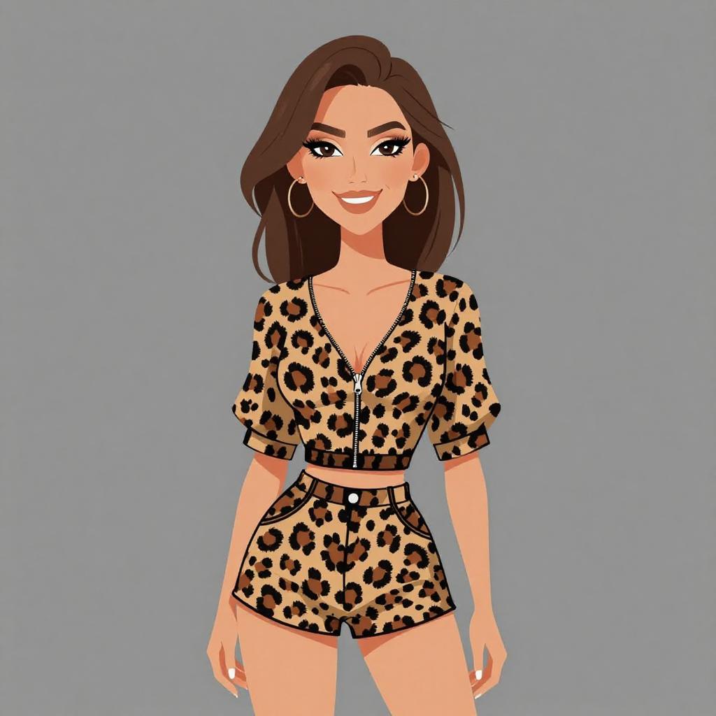 Smiling Woman in Leopard Print Top