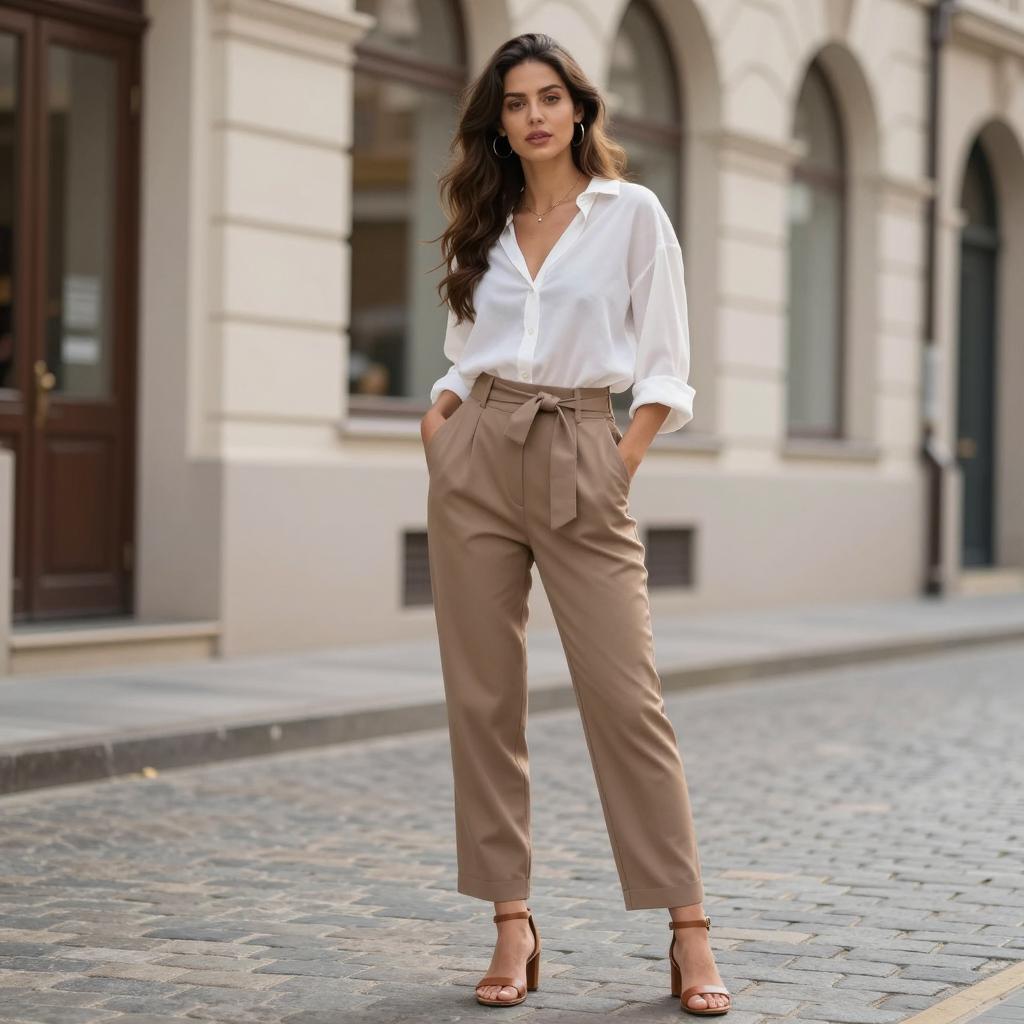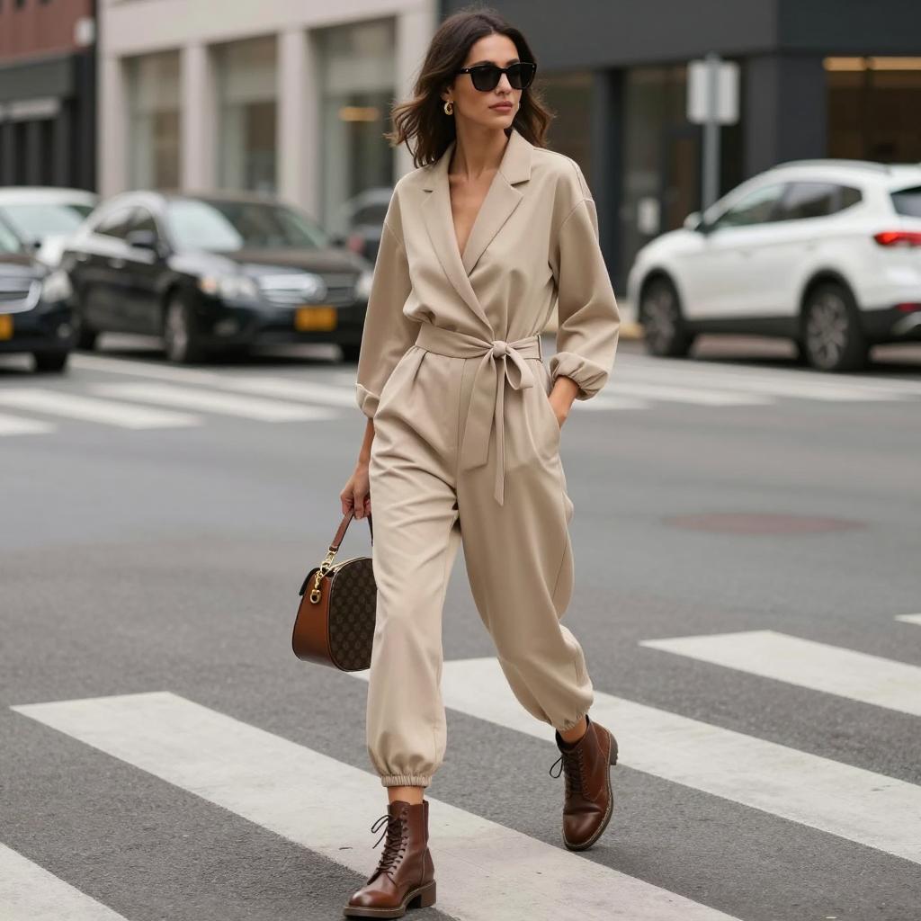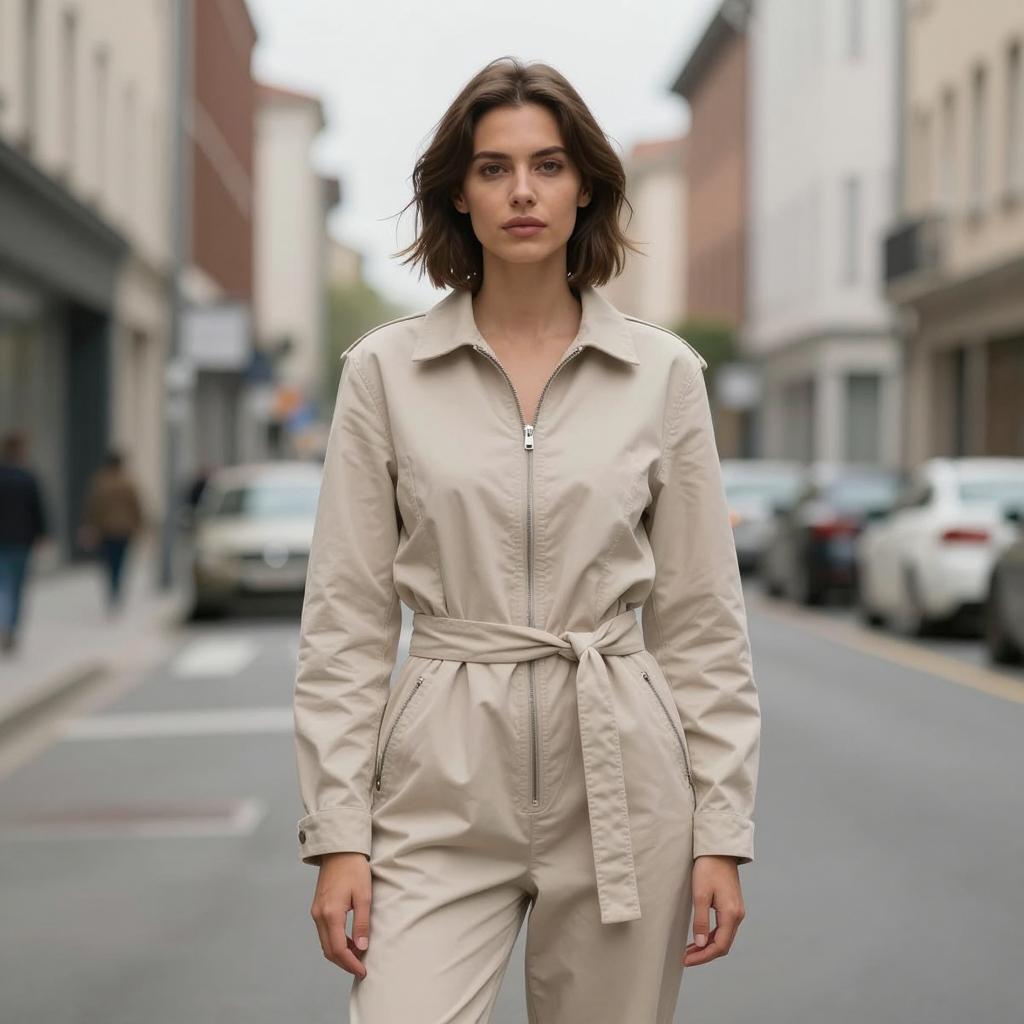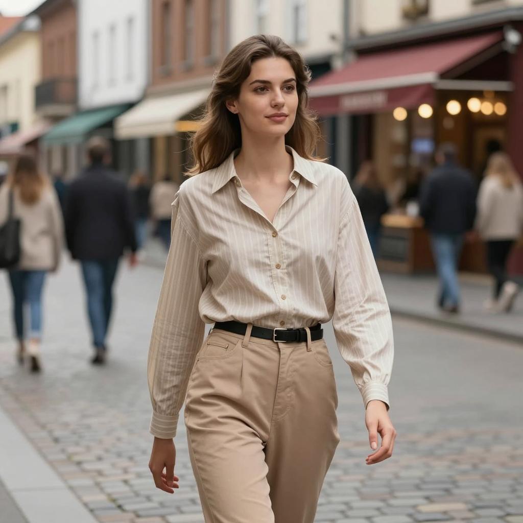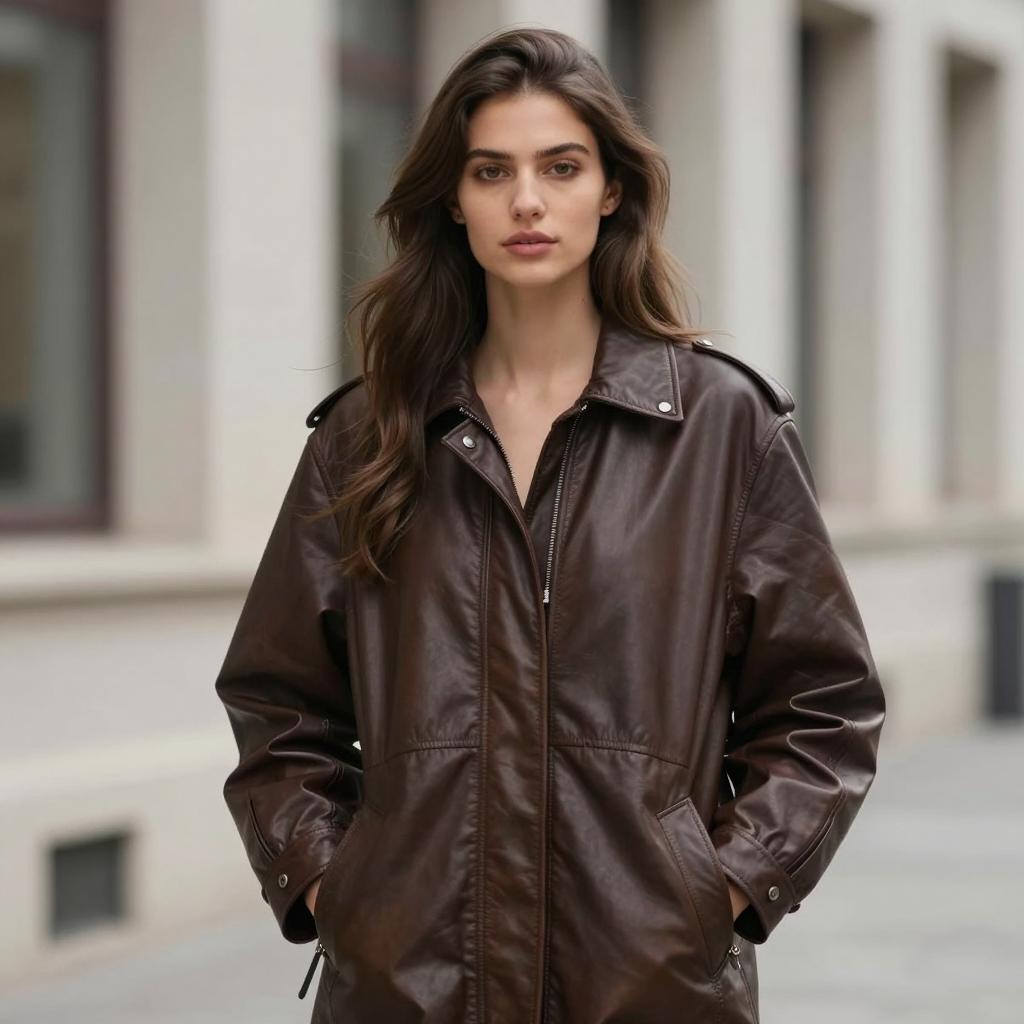 Brunette Woman in Oversized Beige Turtleneck Sweater