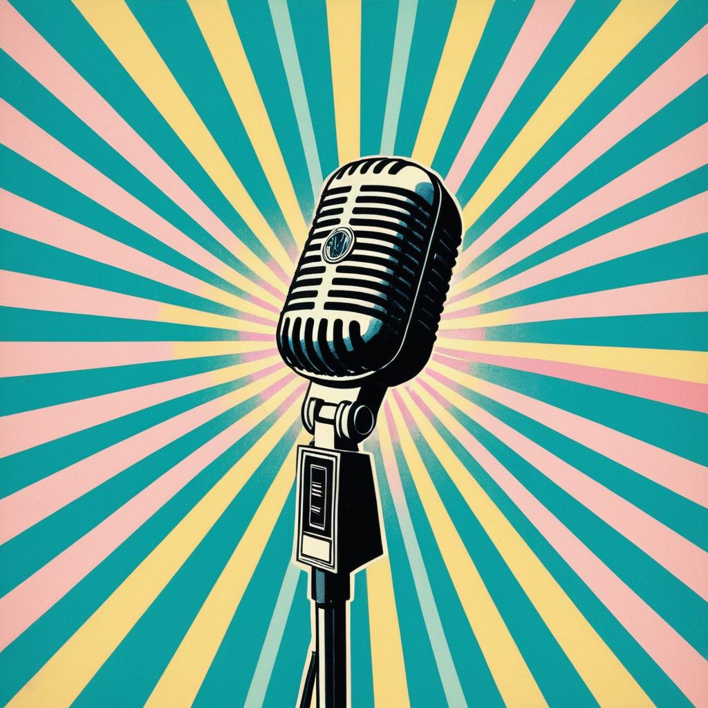 Artwork of a polished jazz trumpet in gleaming gold with a vibrant turquoise background, inspired by the pop art style of Andy Warhol. The trumpet features detailed valves and tubing, emphasizing a bright, reflective surface.