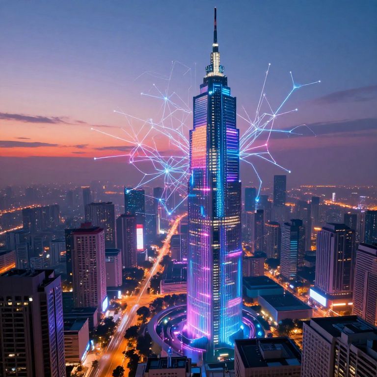 Futuristic Digital Cityscape with Neural Networks