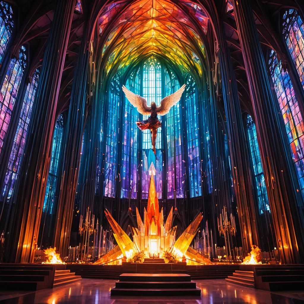 (Inside a lavish ballroom), with glittering chandeliers beneath a maiden made of glass dancing atop the burning logs. The scene is rendered in a fantasy style, with a warm color scheme where glowing embers softly illuminate the surroundings, creating an ethereal ambiance. Flickering shadows and intricate, fluid flames give a sense of motion, enhanced with high detail and a cinematic, 4K atmosphere. Soft light casts a magical glow, producing an enchanting, captivating scene that feels both surreal and mesmerizing.