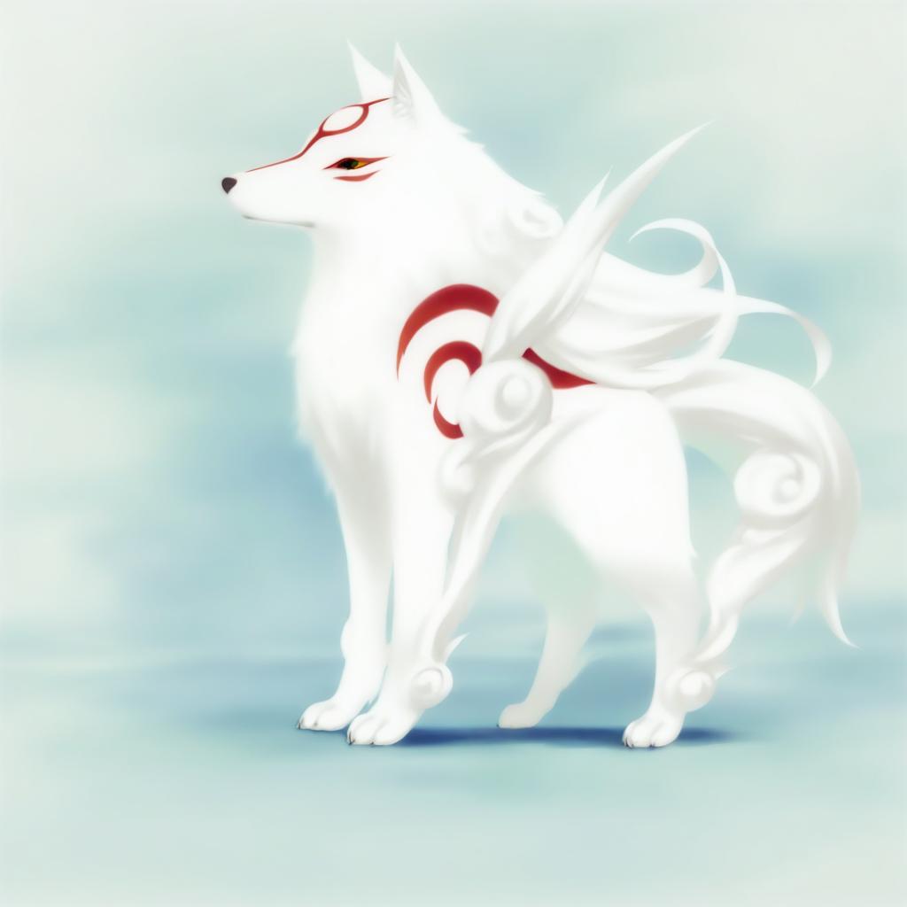 Illustration of Amaterasu (ookami), ookami (game) in the style of Suimya