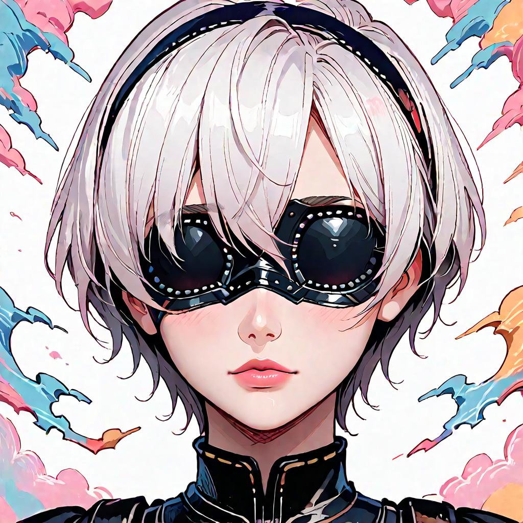 Score_9, score_8_up, score_7_up, source_anime, 1girl, solo, looking at viewer, close-up, 2b \(nier:automata\), blindfold