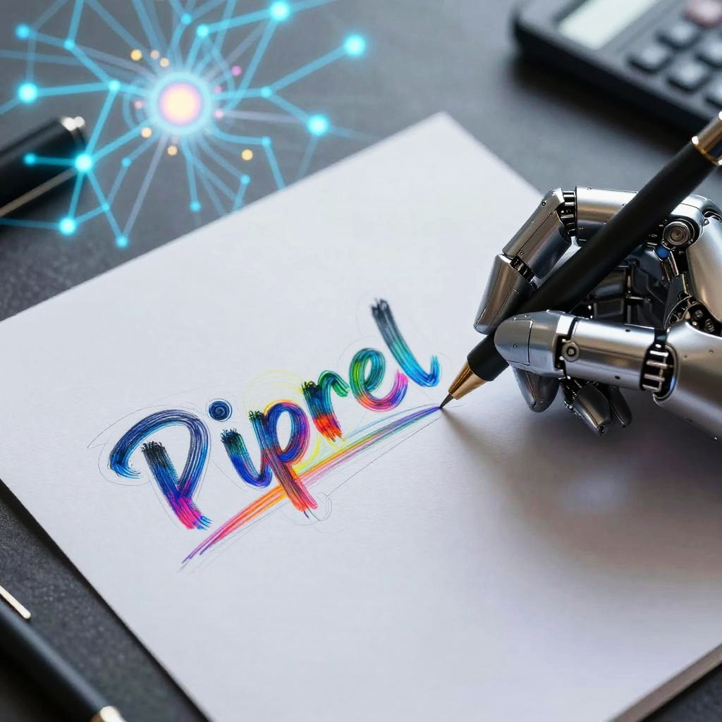 AI draw what you type concept, futuristic digital art with a cybernetic pen sketching vibrant colorful images directly from text commands, glowing neural network background, artistic and high-tech style, ultra-detailed illustration