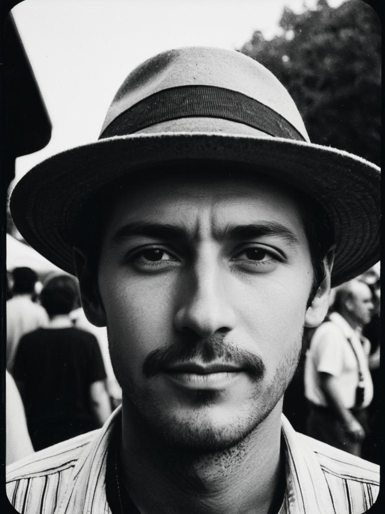 Person wearing a Hat, candid festival portrait, photorealistic tones