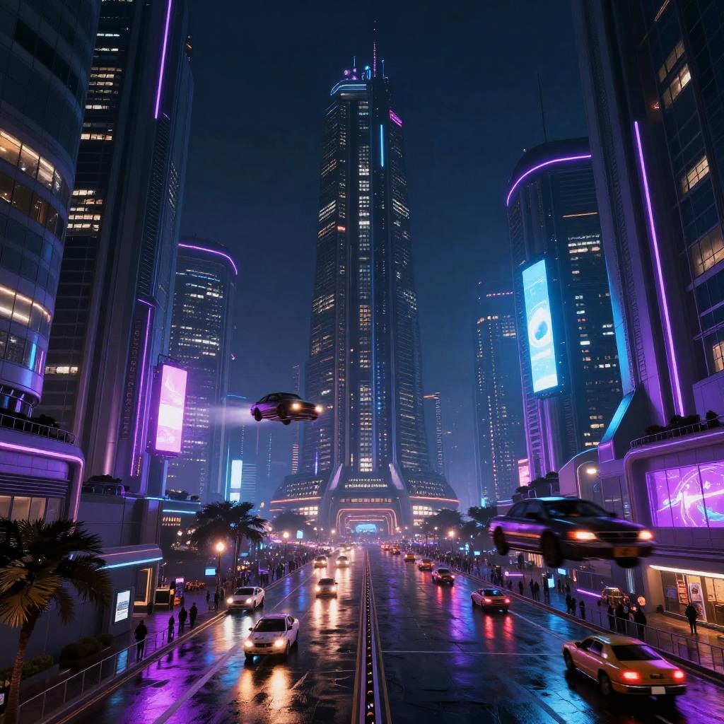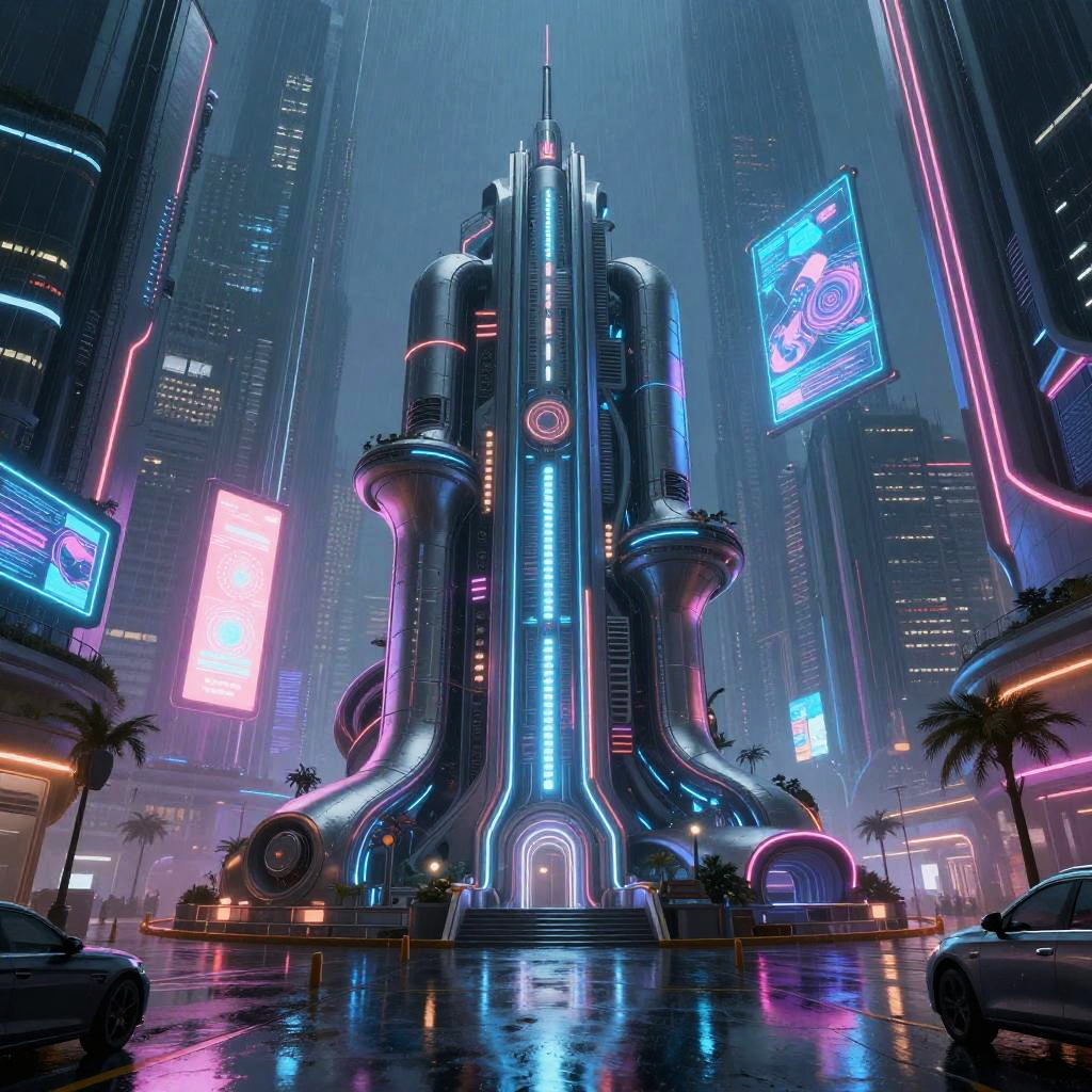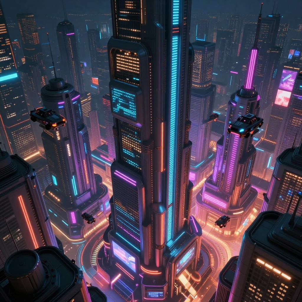 Futuristic Cyberpunk Green Cityscape