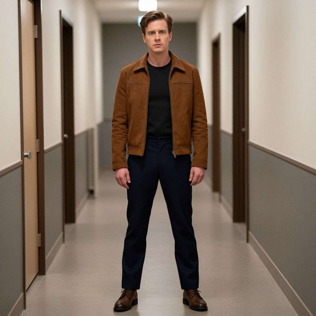 Man in Jacket Standing in Hallway