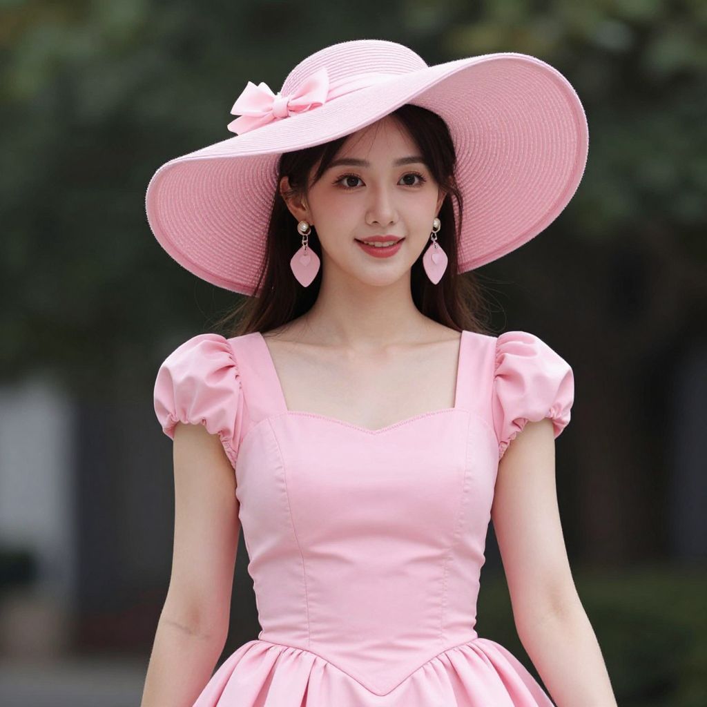 Pink Costume Woman, woman in pink dress with pink hat and earrings