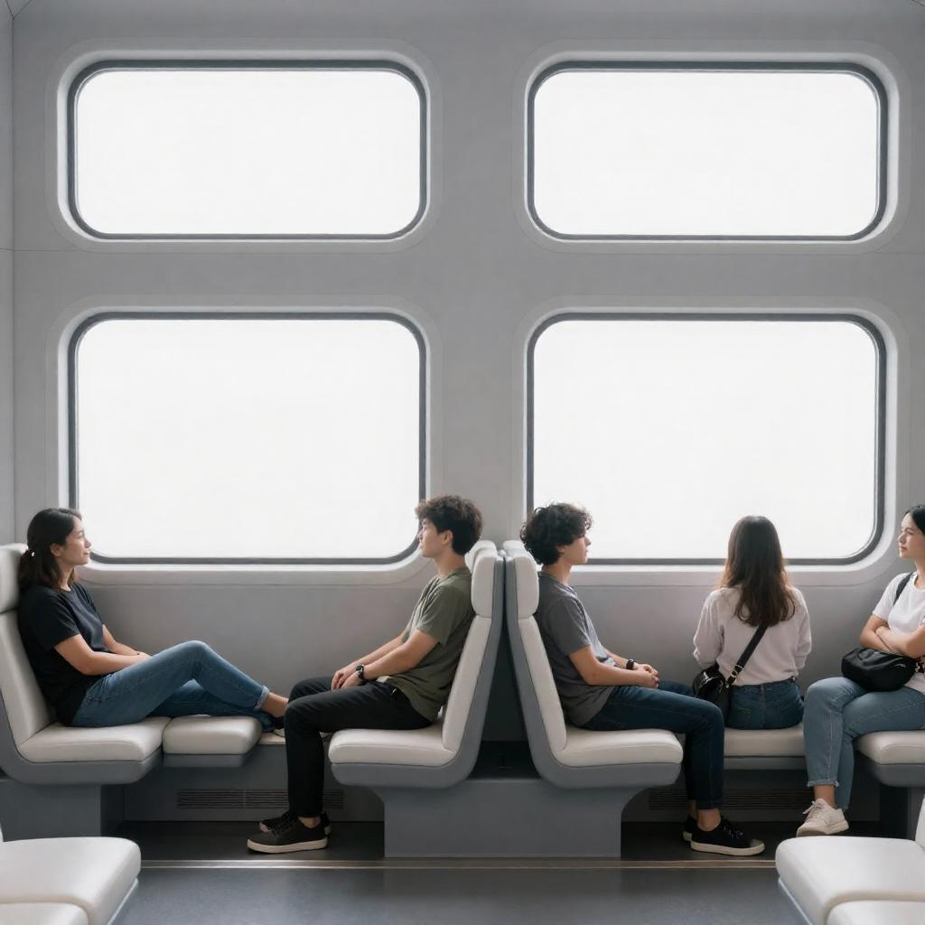 Passengers in Futuristic Train Interior