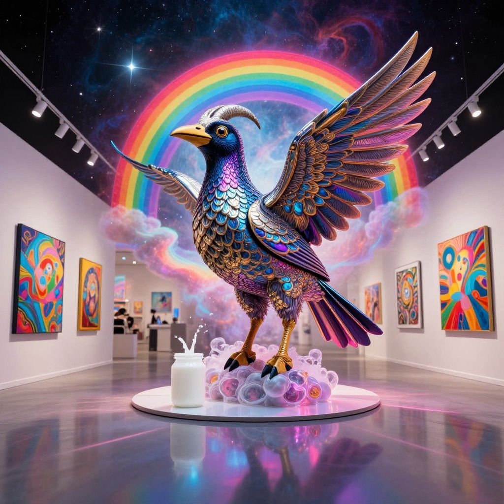 (((Broxa (Jewish) ├в┬А┬У Nocturnal bird that drains goats of their milk))). With a rainbow nebula background . Epic dynamic lighting .(44. Fashionable Concept Store with Rotating Art Installations))=, reflective, psychedelic, (((In the art style of chris dyer)))=((Vivid, HDR, Canon50, 8K, Hyper Realistic, Dramatic, Epic, Dynamic Contrast, Cinematic Lighting)) (((Zoomed Out, - Generate images with sharp edges and fine details.- Produce high-resolution images with no blurriness or distortions.- Create images with clear and well-defined subjects.- Ensure that the output images have crisp lines and distinct features.- Generate images with vibrant colors and accurate tones.- Avoid noise or artifacts in the generated images.- Focus on producing clear textures and patterns in the images.- Emphasize clarity and definition in all aspects of the generated images.- Prioritize the sharpness and clarity of the main subjects in the images.- Optimize the AI model to produce clear and visually appealing images., By art germ